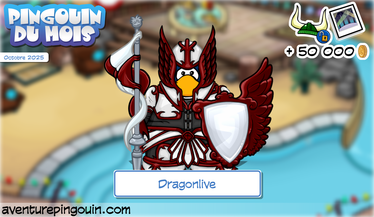 Il remporte un Casque de Viking Vert, un décor exclusif « Pingouin du Mois » pour son igloo, ainsi que la coquette somme de 50 000 pièces !